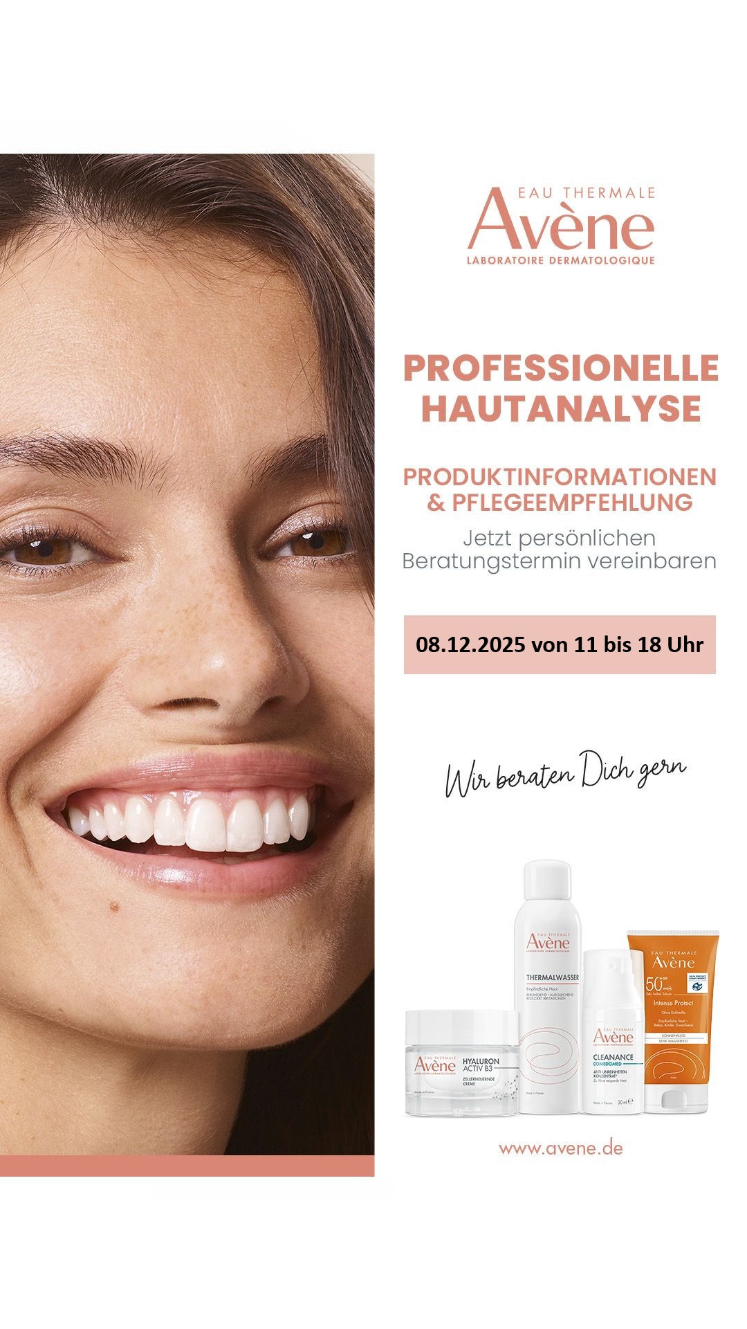 Sichern Sie sich jetzt ihren Termin und lassen Sie sich von der Avène-Hautberaterin an diesem Tag beraten.
