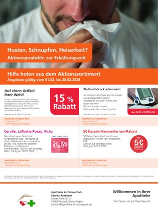 ...liegen uns am Herzen. Unter dem Reiter "Dienstleistungen" erfahren Sie genaueres. Über unseren Webshop ist es bald möglich, einen Termin für die Durchführung einer pharmazeutischen Dienstleistung zu buchen. Besuchen Sie uns gerne - wir besprechen den zeitlichen Umfang auch gerne mit Ihnen vor Ort.